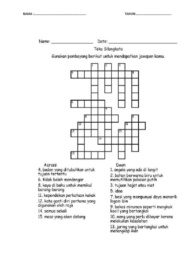 Jawapan Teka Silang Kata Badan Yang Ditubuhkan Untuk Tujuan Tertentu Tk Beteng