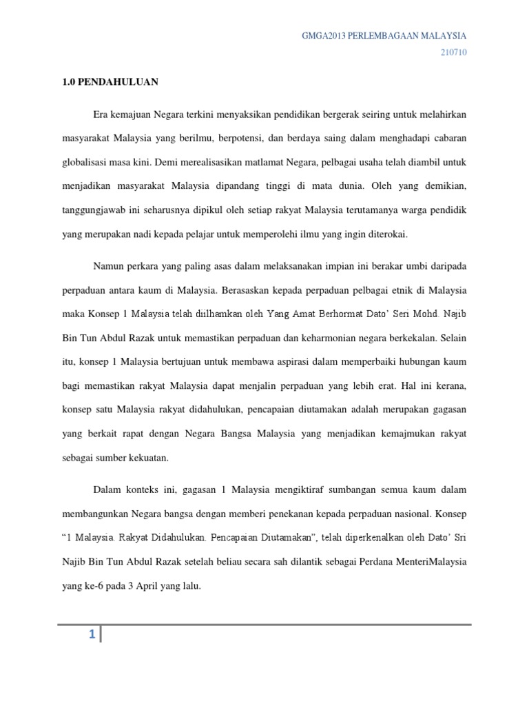 Doc Konsep 1 Malaysia Putih Kertas Academia Edu
