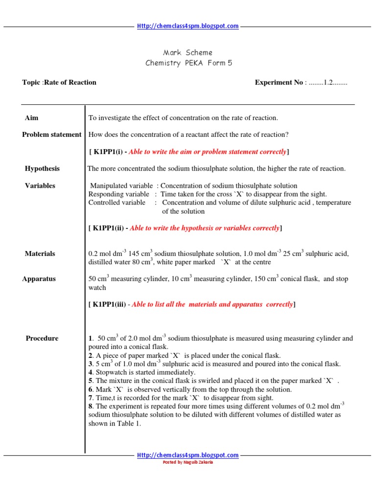 Chemistry Form 5 Chapter 1 Experiment