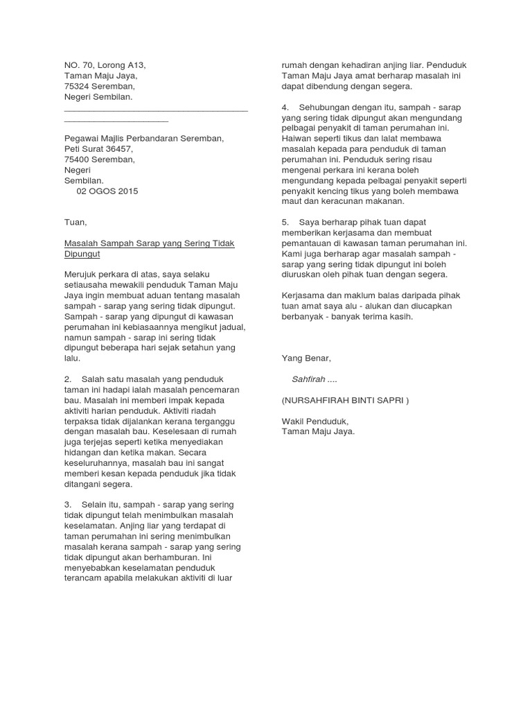Contoh Surat Rasmi Aduan Anjing Liar Surat Rasmi Ra