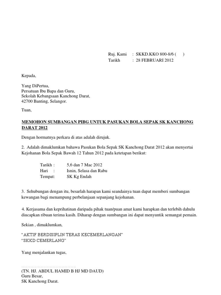 Contoh Surat Rasmi Memohon Sumbangan Hamper Rasmi F