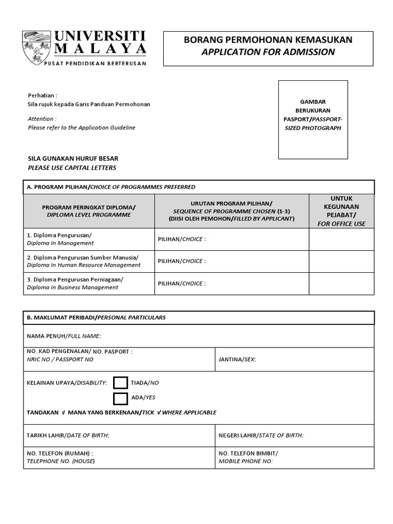 Borang Permohonan Diploma Um