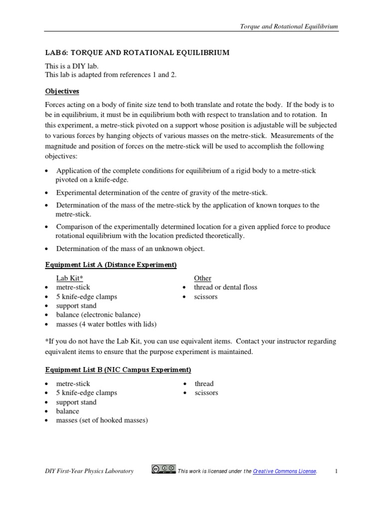 06 Lab 6 Torque And Rotational Equilibrium Diy Center Of Mass Force