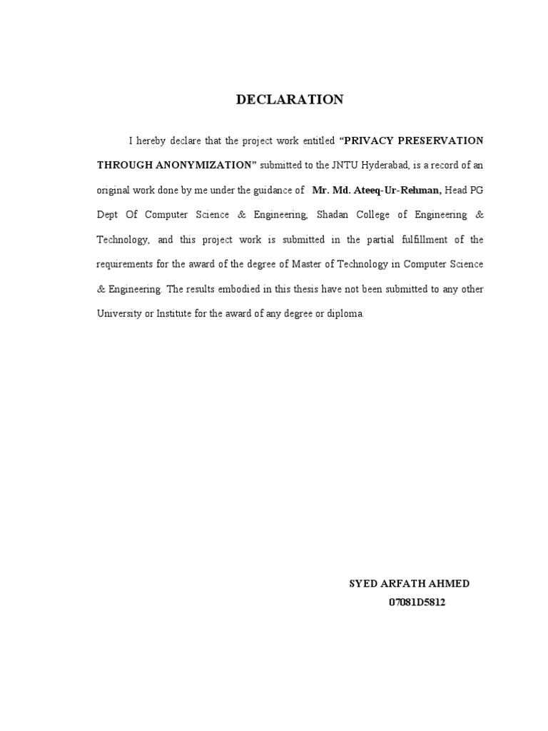 Declaration Format For Project Report Academic Degree Career And Technical Education