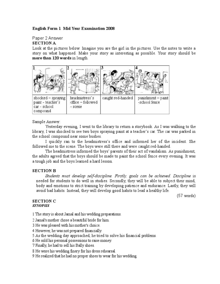 Kertas Peperiksaan Form 1 Mid Year 2008 English Bi Exam Paper 2 Answer Mus225
