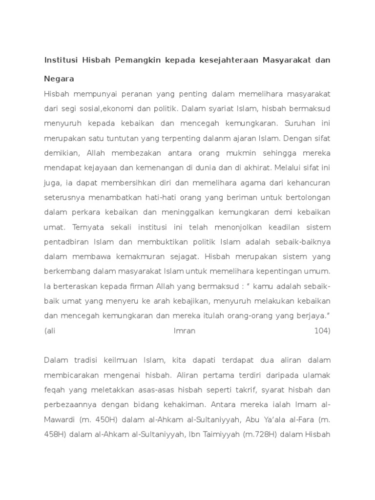 Institusi Hisbah Pemangkin Kepada Kesejahteraan Masyarakat Dan Negara