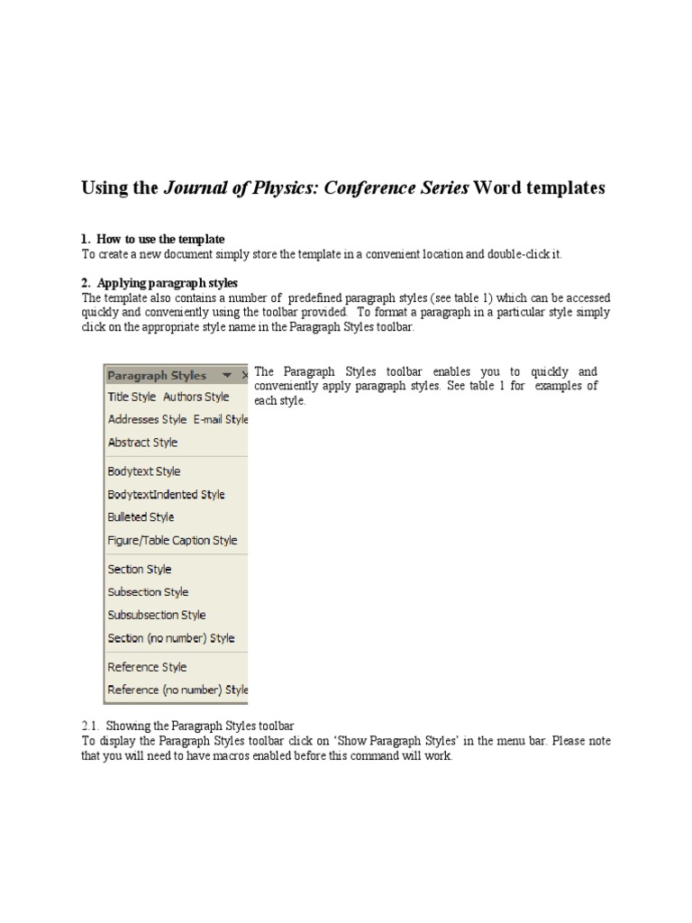Using The Journal Of Physics Conference Series Word Templates Paragraph Computer Programming