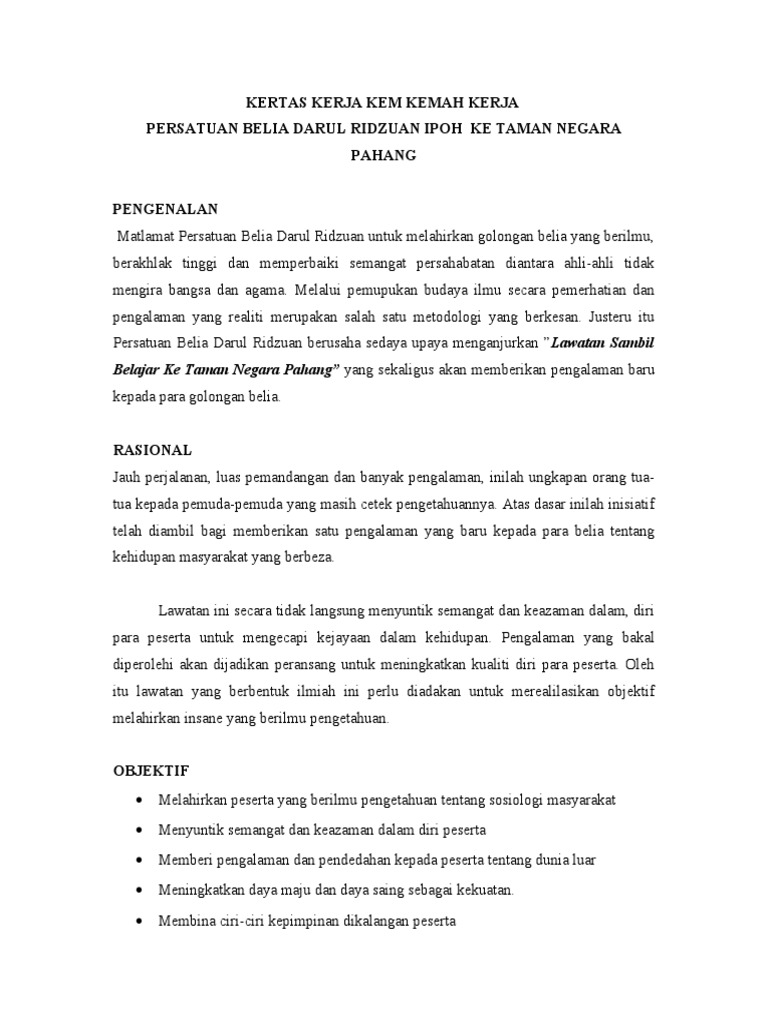 61898717 Kertas Kerja Lawatan Taman Negara 2 Doc