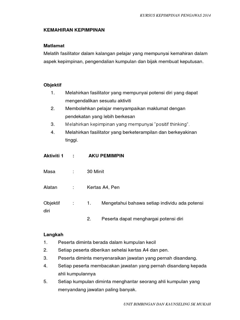 Doc Kertas Kerja Kem Kepimpinan Pengawas Skhh Arm Zat Academia Edu