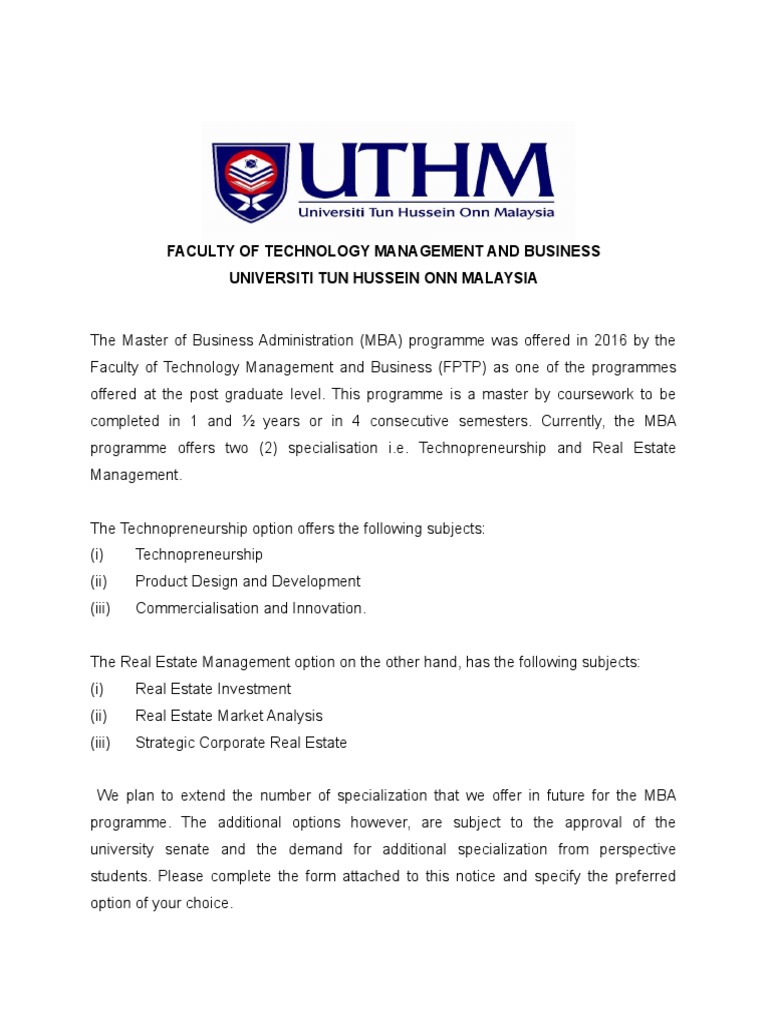 Master Of Business Administration Mba With Real Estate Specialisation