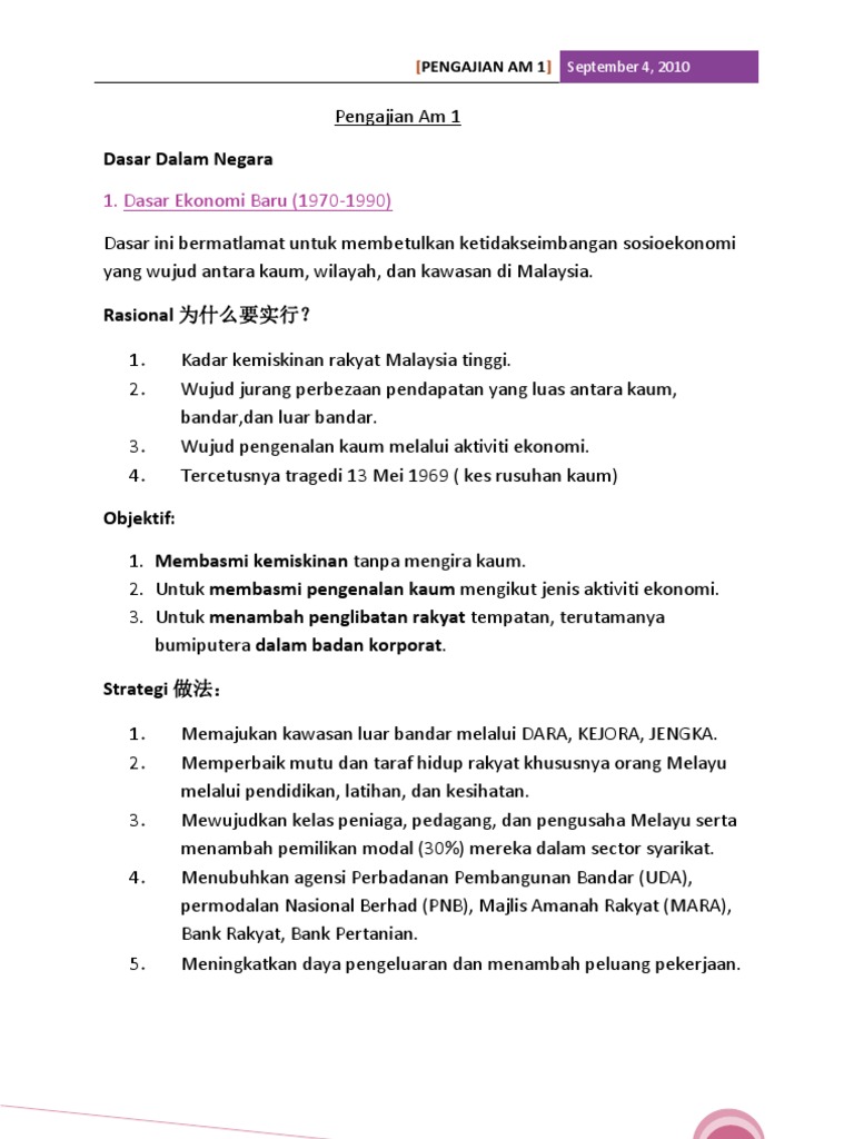 Pengajian Am Penggal 2 Dasar Ekonomi Baru