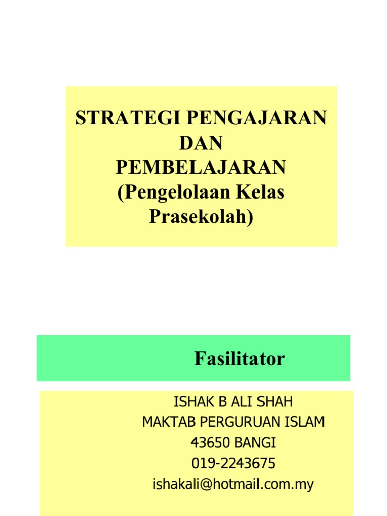 Strategi Pengajaran Dan Pembelajaran Kanak Kanak Prasekolah Documents